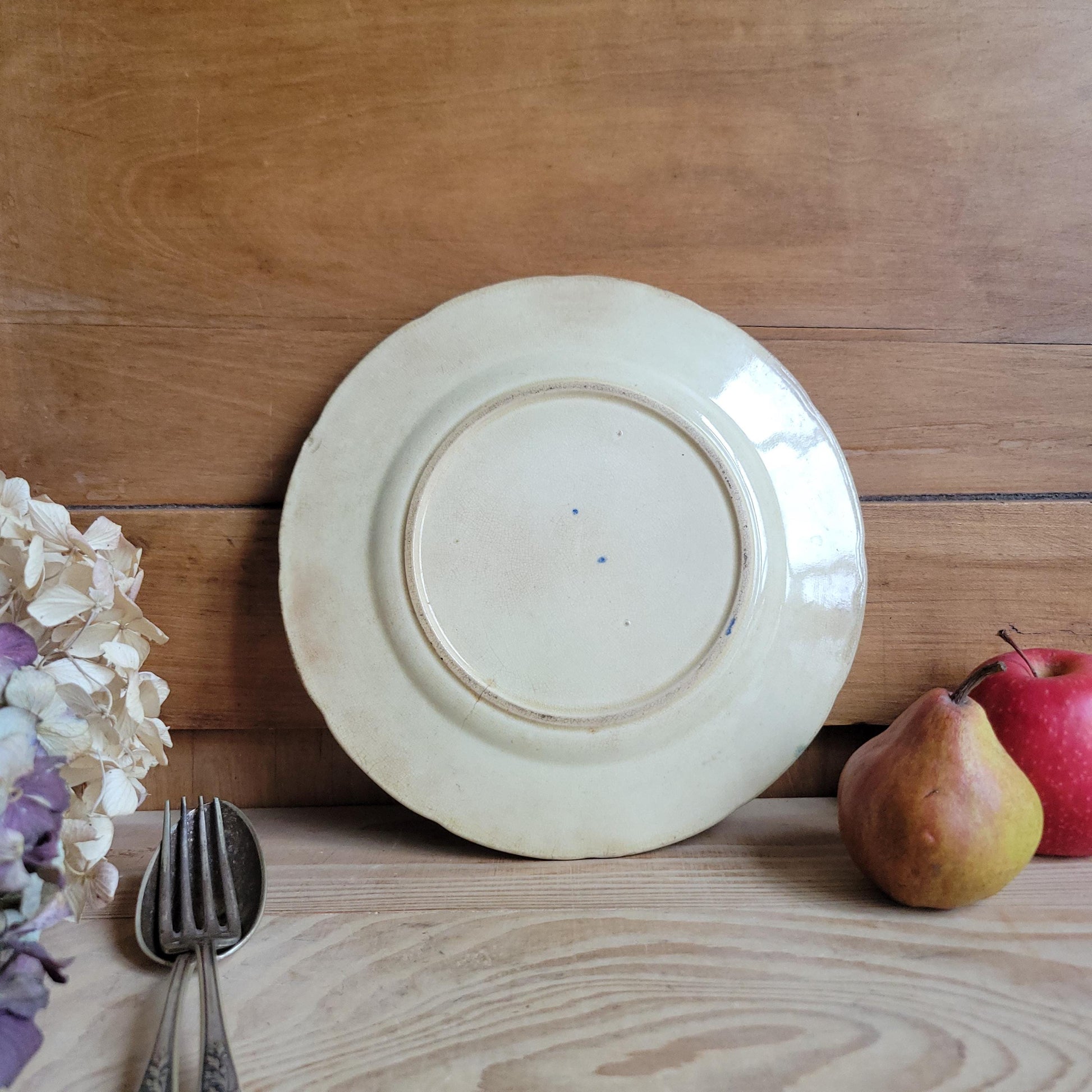 CONDITION - Very good antique condition with a small mature visible chip on the rim. Some discoloration of the glaze is also present. You may see some fleabites / glaze losses or faults and light signs of use. Overall light signs of wear and use, with no cracks. In spite of the chip it is still suitable for use on display as a lovely antique French piece.