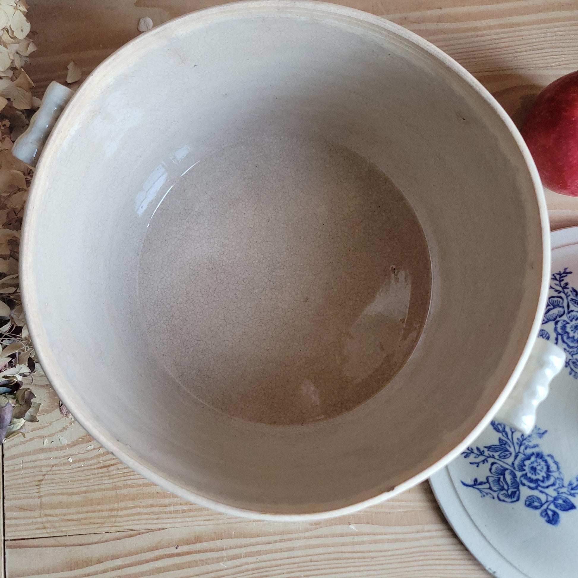 A classic stoneware soupière by St Uze, decorated with traditional blue florals and complete with its original lid. The generous form and balanced proportions make this a highly desirable example.